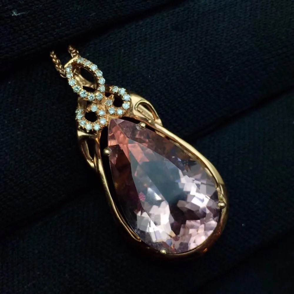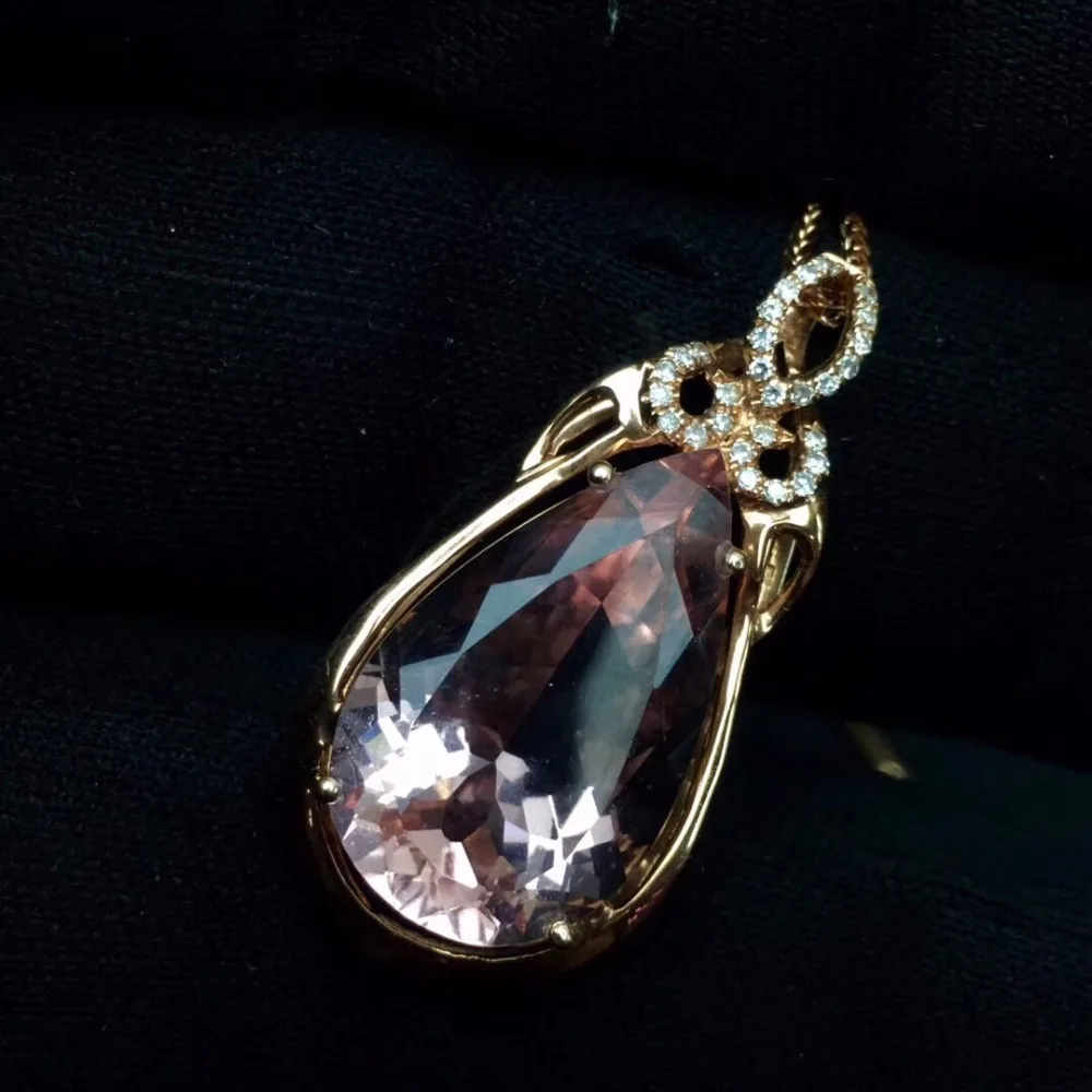 REVIEW TOP SELLER Fine Jewelry Real Pure 18 K Rose Gold Jewelry AU750 100% Natural Morganite Gemstone 9.7ct Pendants