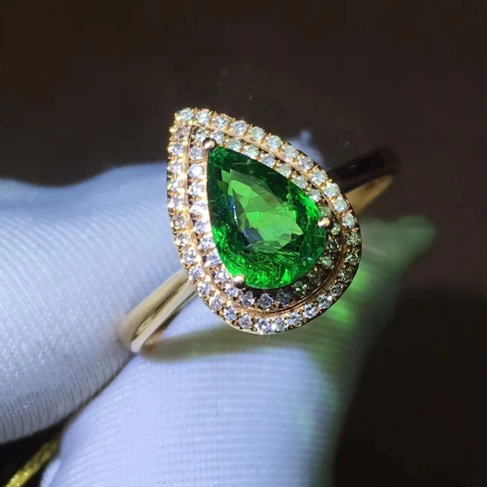 HIGH QUALITY Fine Jewelry Real 18K White Gold 100% Natural 1.35ct Vivid Tsavorite Gemstones 18k Tsavorites Diamo