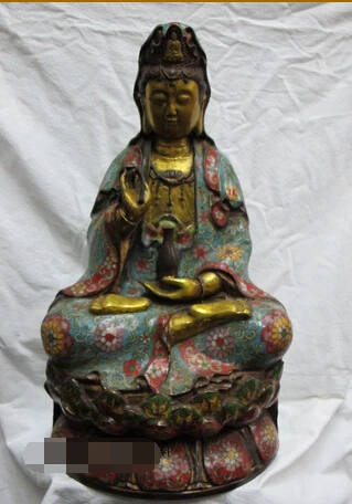 Hot Sale bir 005693 18"Tibetan Bronze cloisonne Buddha withy holy-water vase kwan yin Guanyin statue